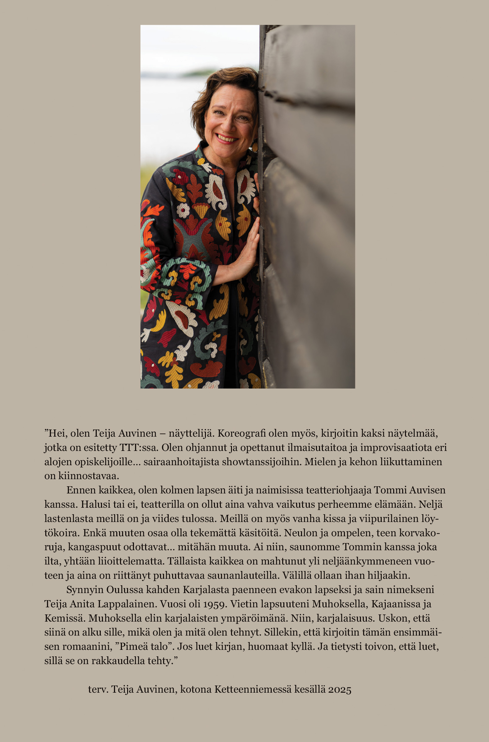 Näyttelijä, kirjailija Teija Auvinen kertoo teoksestaan, sen synnystä ja kirjoittamisesta yleisölle kuluvan syksyn -25 aikana. Tule paikalle Helsinkiin Oodiin 21.11. klo 17-18 tai Tampereelle Akateemiseen Kirjakauppaan 22.11. klo 14-16. Olet Tervetullut! Romaanin Pimeä talo julkistamistilaisuus oli 8.10.-25 Kellariteatterissa Tampereella, jossa kirja sai yleisöltä innostuneen ja ihastuneen vastaanoton.